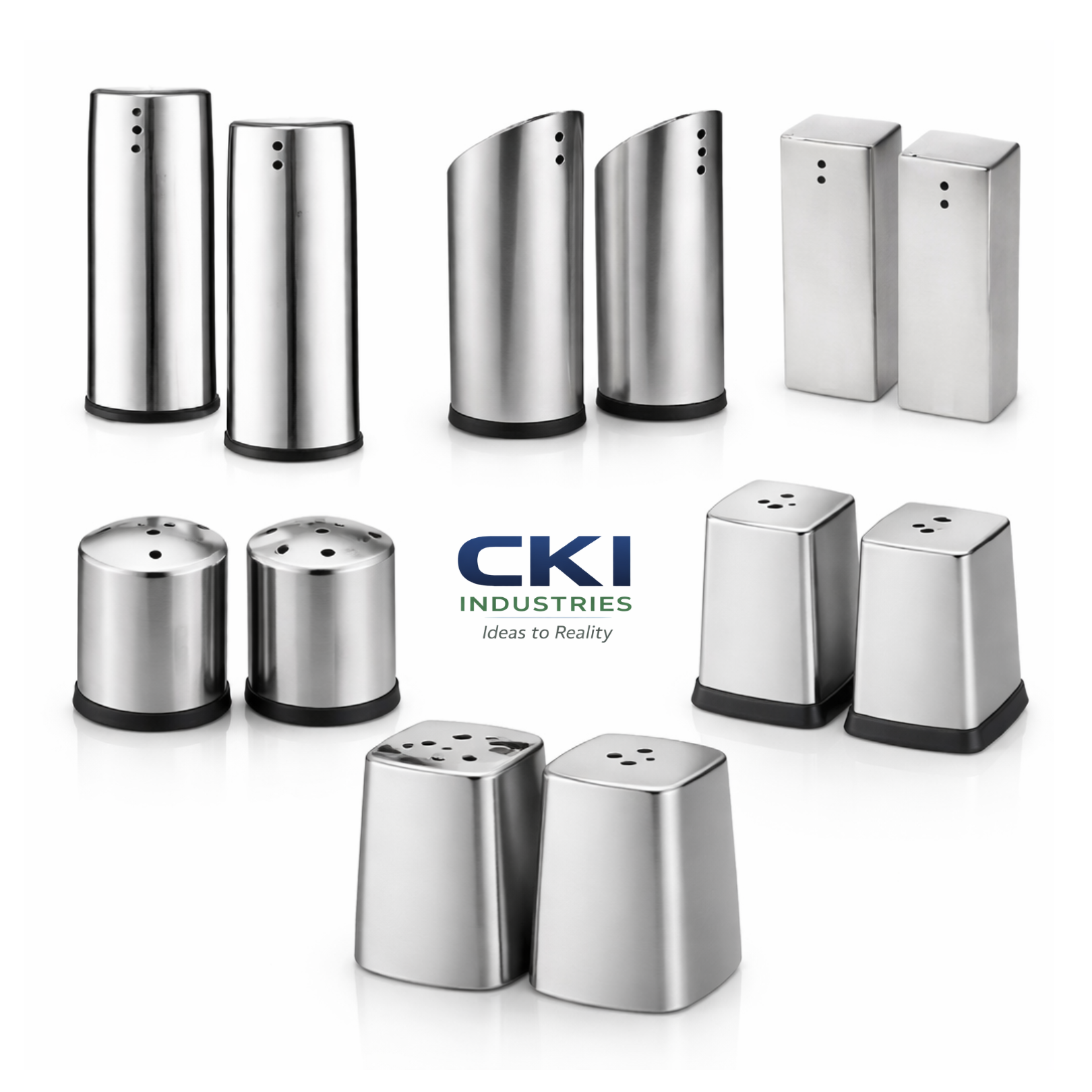 Premium stainless steel salt & pepper shaker set designed for hotels, restaurants, cafés, bars, banquets, and catering setups. Durable, rust-resistant finish ensures long service life. Ideal for B2B bulk supply, export orders, OEM manufacturing, and custom branding solutions worldwide.